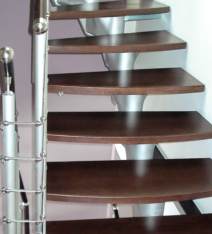 Лестница ЛМ 19 спроектирована в современном стиле, все элементы из нержавеющей стали и массива дерева прекрасно дополняют друг друга. Древесина лестницы темного, насыщенного оттенка, что притягивает к ней дополнительное внимание.