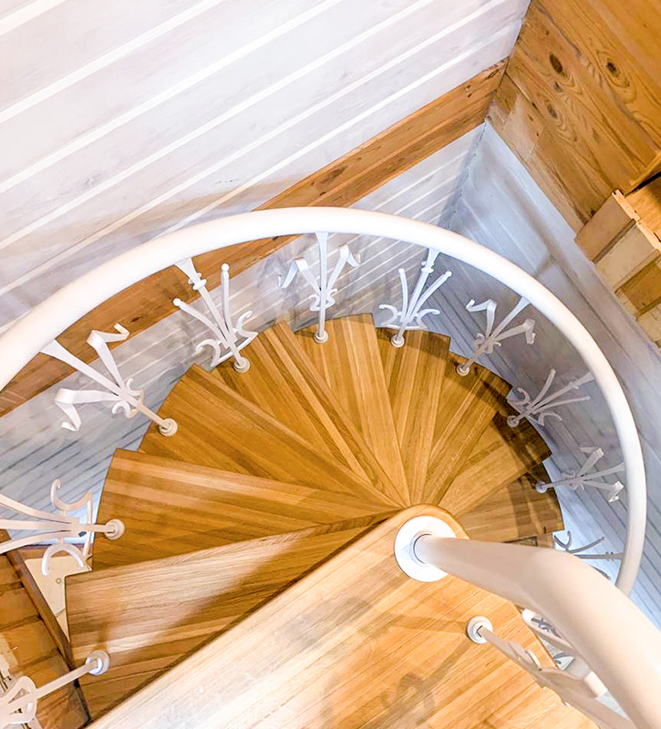 Небольшая, но очень элегантная винтовая лестница ЛМ 41 в стиле французской «La Belle ?poque». Эта модель отличается сравнительно небольшим диаметром. Украшена лёгкими круглыми перилами и тонкими фигурными балясинами. Идеально, когда нужно максимально сэкономить место или разместить лестницу там, где пространство ограничено.