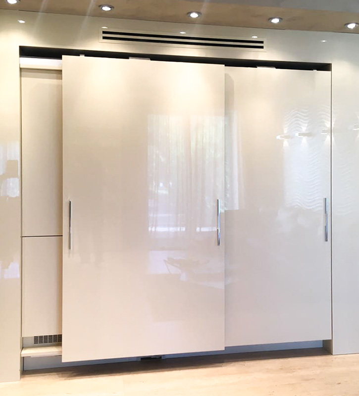 Уникальные межкомнатные двери ДС 08 со стеклянной отделкой, выполненные в современном стиле. Приятный пастельный оттенок светло-бежевого цвета создает атмосферу теплоты, поддерживая ощущение простора. Сдвижной механизм обеспечивает удобство использования. Эта модель подойдет для использования в частных и коммерческих интерьерах, установки в конференц-залах, ресторанах.