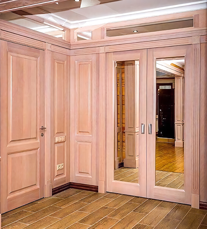 Межкомнатная дверь с зеркалом ДМ 11 изготавливается из клееного массива, поэтому сохраняет форму в любых условиях. Зеркало добавляет в интерьер света, визуально расширяет пространство. Твердая древесина лиственных пород не только обеспечивает конструкции прочность, но и отличается изысканностью рисунка. Изделие окрашено в легкий белый цвет, через который просматривается древесная текстура. Межкомнатная дверь ДМ 11 подходит для интерьеров в классическом, скандинавском стиле, прованс, кантри или модерн. В комплект входит полотно двери, крупное зеркало прямоугольной формы, дверная коробка, резные наличники и качественная фурнитура.