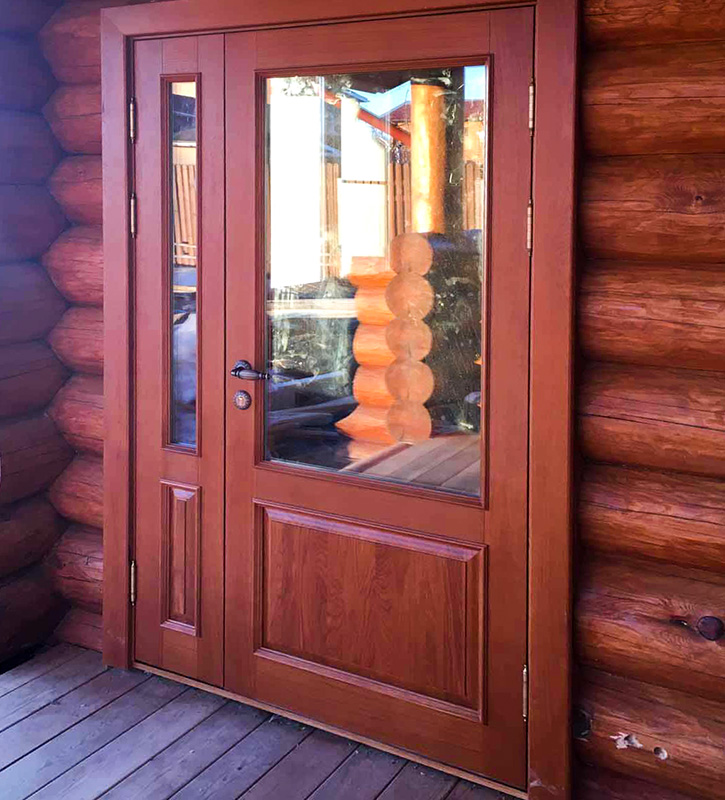 Двери из натурального массива дерева ДМ 17 со стеклянными вставками в классическом стиле. Могут использоваться как межкомнатные или входные, особенно гармонично будут смотреться в проеме выхода на веранду или террасу в бревенчатом доме. У этой модели достаточно лаконичное, сдержанное оформление и приятный коричнево-красный теплый цвет. При изготовлении на заказ ширина может варьироваться в соответствии с архитектурными особенностями проекта.