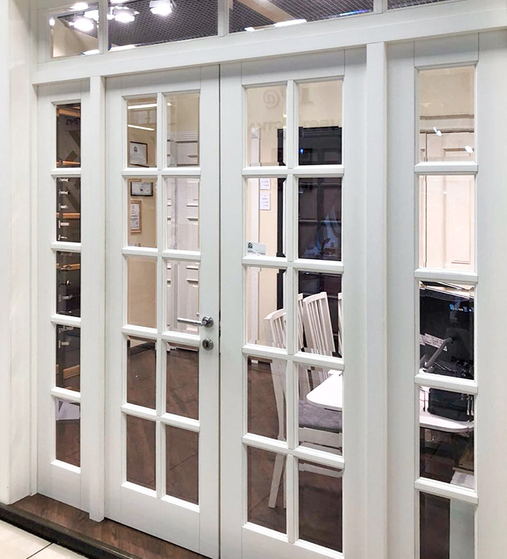 Межкомнатные двери ДМ 29 в классическом стиле с элементами прованса. Их главное отличие – стеклянные вставки с широкой деревянной раскладкой, как в полотнах, так и в глухих деталях конструкции. Эта модель дверей хорошо подойдет для установки в столовой, гостиной, зимнем саду или галерее. Белый цвет в сочетании с прозрачными стеклами делает зонирование помещений визуально условным.