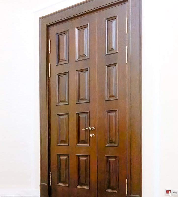 Элитная входная дверь ДМ 15 состоит из двух глухих разноразмерных створок — одна широкая, вторая узкая. Модель выполнена из 100 % массива в классическом стиле. Выбор материала предоставлен заказчику, но в любом случае это твердая древесина благородных или экзотических пород с неповторимой текстурой и спокойным цветом. В результате рельефной фрезеровки полотна получается потрясающе красивая дверная конструкция «под старину» с четким геометрическим рисунком. Дверь ДМ15 одновременно надежная, функциональная, красивая.