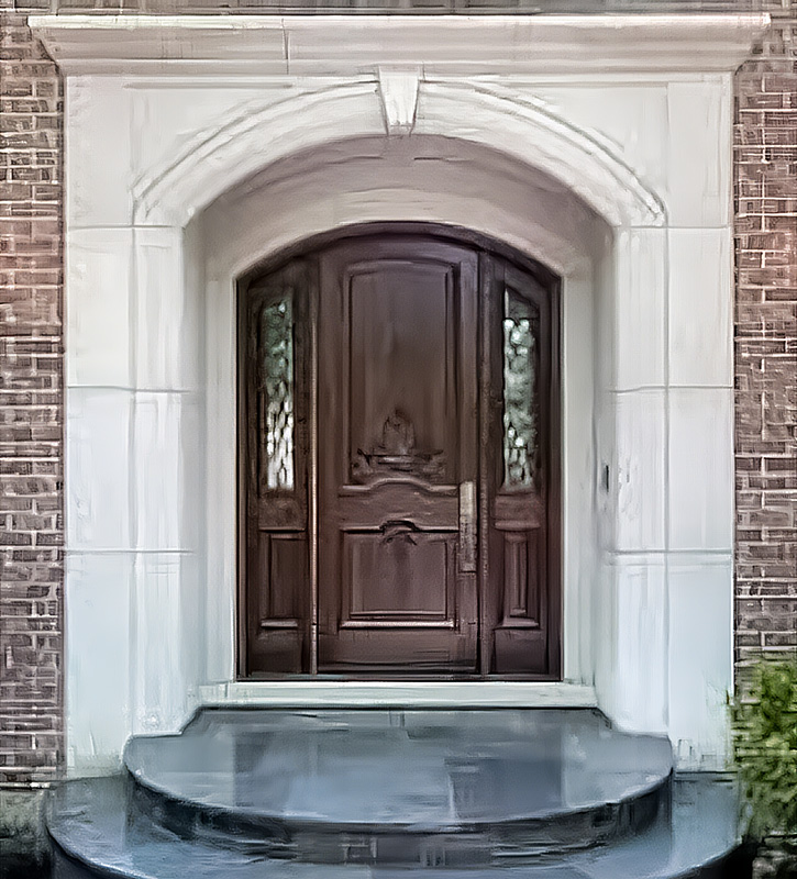 Входная дверь из массива ДМ 34 класса люкс предназначена для больших домов, элитных особняков, коттеджей в классическом стиле. Модель арочной формы состоит из глухой центральной створки и двух неподвижных панелей по бокам. В боковые элементы врезаны стеклянные вставки, которые пропускают свет в интерьер. Полотно украшено рельефным рисунком, сделанным с помощью фрезерования поверхности. Сложная дверная конструкция арочной формы будет изготовлена мастерами компании в течение 10 дней из благородных пород на выбор заказчика.