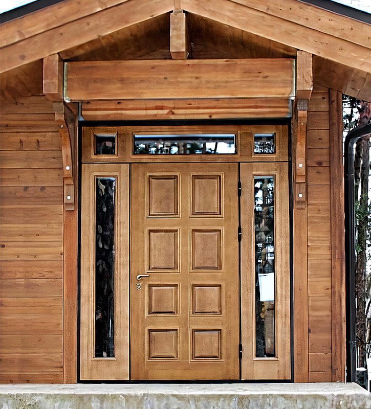 Классические входные двери со стеклом ДМ 35 состоят из нескольких частей: боковых панелей и центральной створки. Сложная конструкция добавляет основательности и монументальности дому. Стеклянные вставки придают массивной входной группе визуальной легкости, а также служат дополнительным источником естественного освещения в помещении. Фрезеровка полотна создает рельеф со строгими геометрическими формами. Твердое дерево лиственных пород не подвержено растрескиванию и деформации, что обеспечивает сохранение первоначального вида дверного полотна на всем сроке эксплуатации.