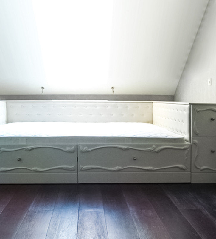 Кровать из массива для детской КРМ 01 из массива дерева и МДФ с лаконичным дизайном оптимально подходит для интерьеров в современном стиле, минимализм, классика или винтаж. У нее компактные размеры, она отлично подходит для маленьких комнат, мансардного этажа, чердака. Изготовим кровать по индивидуальному проекту под ваши размеры и интерьер в нужном цвете.