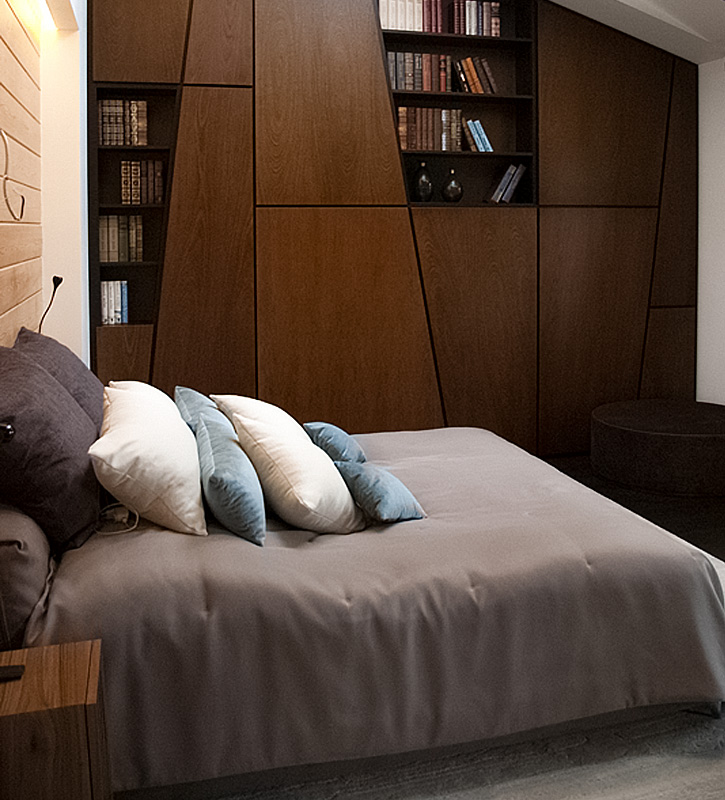 Это облицовочный материал, который тонким слоем наносится на изделия из МДФ и массива. Шпон представляет собой тонкий слой натурального дерева, поэтому изделия внешне выглядят так, будто изготовлены из массива. При этом они намного легче и дешевле. Такая мебель требует бережного обращения, не любит влагу.