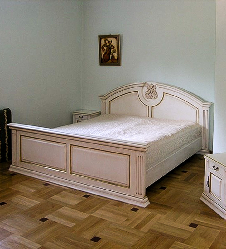 Двуспальная кровать с резными элементами КРМ 11 «под старину» из массива натурального дерева идеально подходит для классических и винтажных интерьеров, поможет создать в комнате особую атмосферу. Наша компания занимается производством изделий из натурального дерева. Вся мебель изготавливается под заказ по индивидуальным проектам под Ваши размеры в нужном цвете.