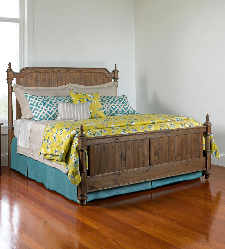 Двуспальная кровать КРМ 43 с декоративными стойками с резьбой и высоким жестким изголовьем выполнена из массива ольхи. Это отличный вариант обустройства спальни в скандинавском, стиле прованс, винтаж, классика и многих других, также она хорошо подходит для дачи и загородных домов. Изготовим кровать и другую мебель из натурального дерева по индивидуальному проекту, созданному специально под ваш интерьер.