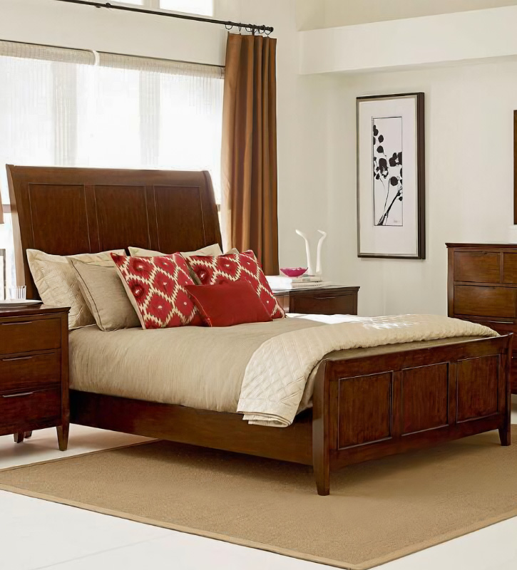 Прочная дубовая двуспальная кровать КРМ 49 смотрится благородно. Простой геометрический рисунок, украшающий изголовье и изножье, делает мебель элегантной. Изголовье жесткое и высокое, слегка изогнутой формы. Поэтому на него удобно облокачиваться, сидя в кровати. Стоит мебель на ножках красивой формы – они постепенно сужаются книзу. Кровать подойдет для установки в спальню с практически любым дизайном.