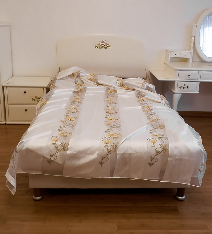 Это облицовочный материал, который тонким слоем наносится на изделия из МДФ и массива. Шпон представляет собой тонкий слой натурального дерева, поэтому изделия внешне выглядят так, будто изготовлены из массива. При этом они намного легче и дешевле. Такая мебель требует бережного обращения, не любит влагу.