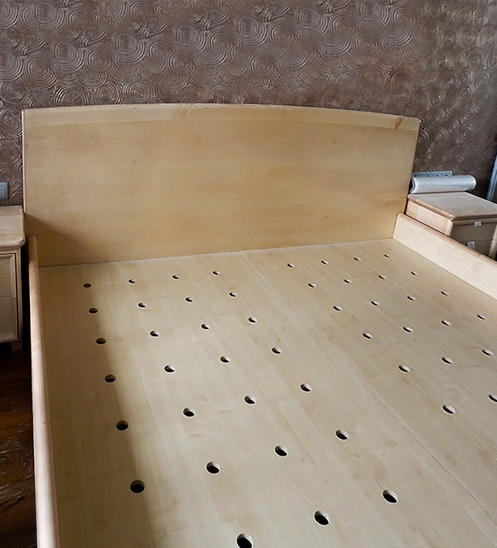 Кровать из массива дерева модели КРМ 25 выполнена в минималистичном стиле, выглядит просто, но представительно. Отсутствие броских дизайнерских элементов позволяет установить ее в спальню с любым дизайном. В основании деревянной кровати проделаны отверстия. Они обеспечивают свободное прохождение воздуха, повышая гигиеничность спального места и не давая скапливаться в матрасе влаге.